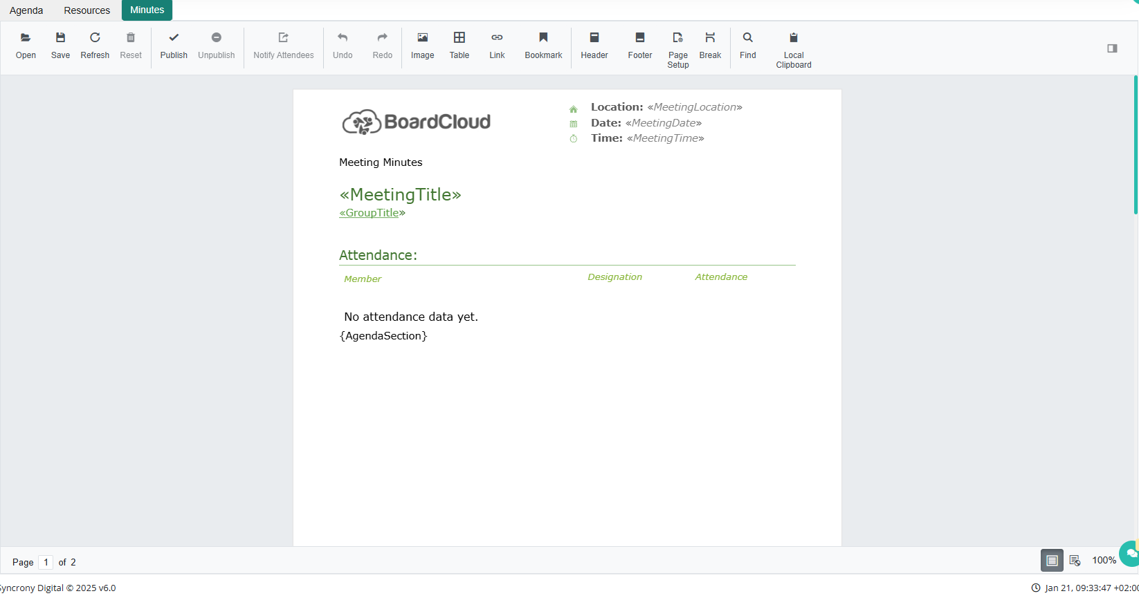 BoardCloud increases your efficiency by automating certain aspects of the production of meeting minutes. This significantly reduces the time and effort traditionally required to produce minutes for distribution to meeting attendees.