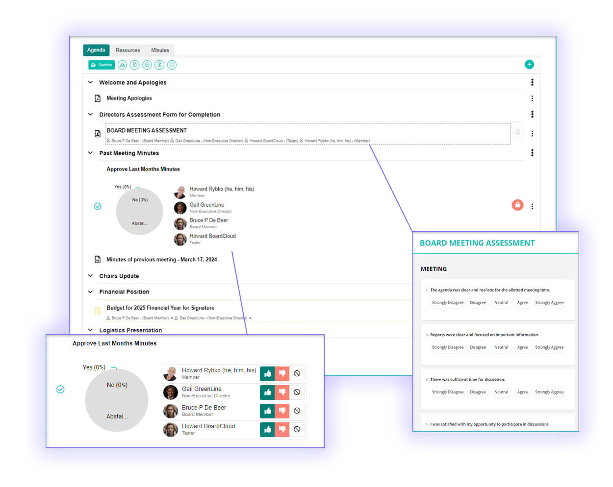 The BoardCloud agenda builder is an intuitive drag-and-drop tool for quickly creating, organizing, and publishing secure meeting agendas and supporting documents.