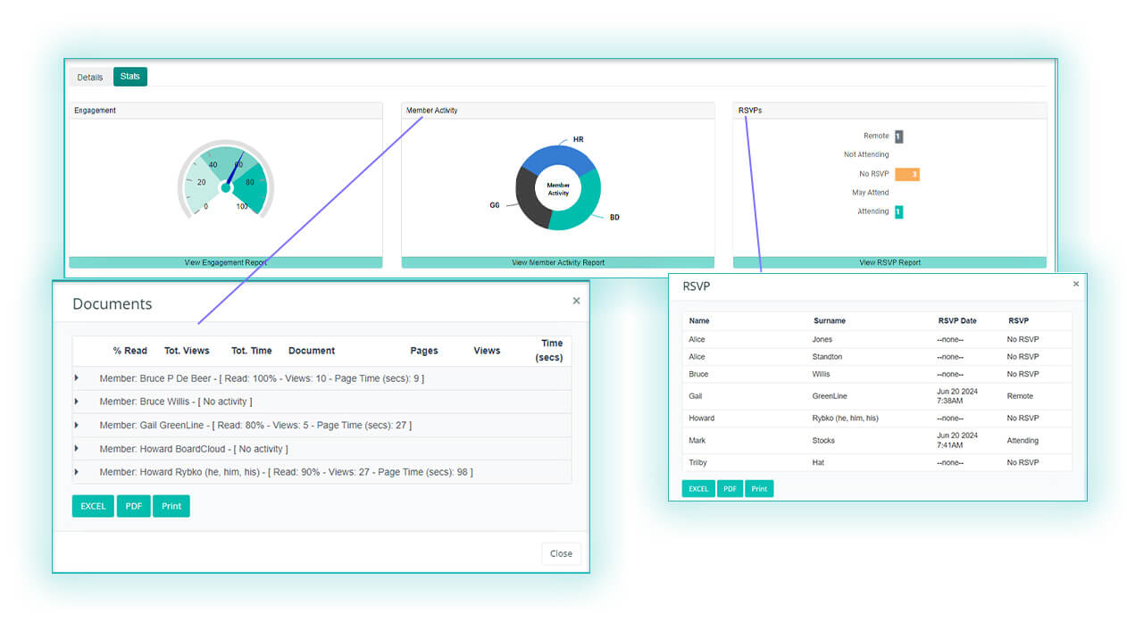 BoardCloud has a novel feature that allows for the tracking of director preparation and pre-meeting engagement. It does this by means of two simple to understand metrics.